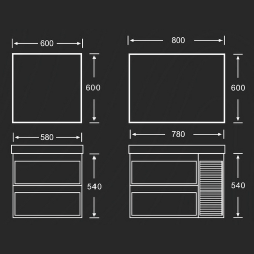 - מידות רוחב ארון ומראה: 60 | 80 ס"מ