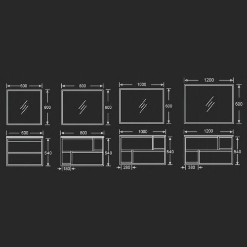 - מידות רוחב ארון ומראה: 60 | 80 | 100 | 120 ס"מ