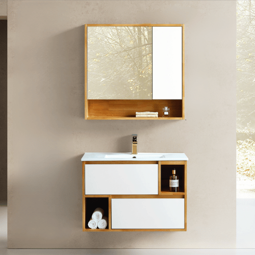 ארון אמבטיה תלוי מעץ מלא בעיצוב מודרני | דגם דיווה | מגוון משטחים, צבעים ומידות לבחירה