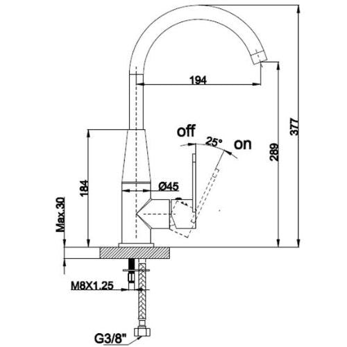 - מרחק הפיה ממרכז הברז: 19.4 ס"מ
