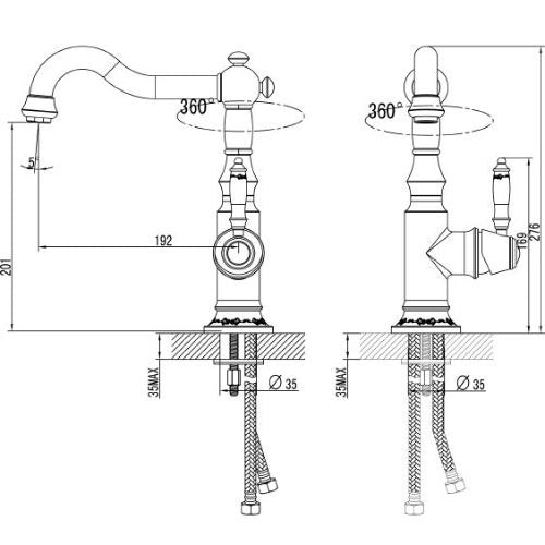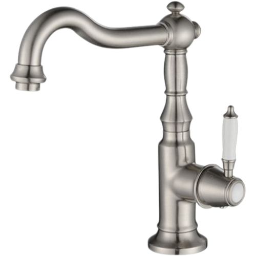 - ברז מעוצב בסגנון ענתיק מגיע בשלושה צבעים לבחירה: ניקל, זהב מוברש בציפוי PVD וניקל מוברש.