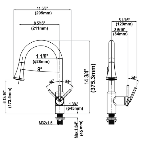 - מרחק הפיה ממרכז הברז: 20 ס"מ