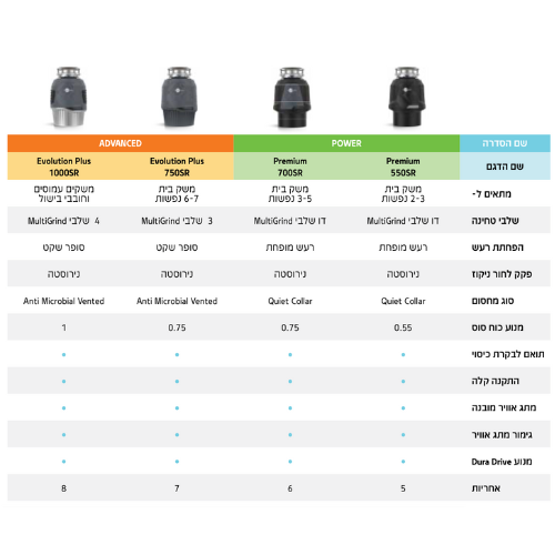 - טוחן אשפה אבולושן 700 בעל טכנולוגיית SoundSeal המפחית רעשים בעת פעולת הטחינה!