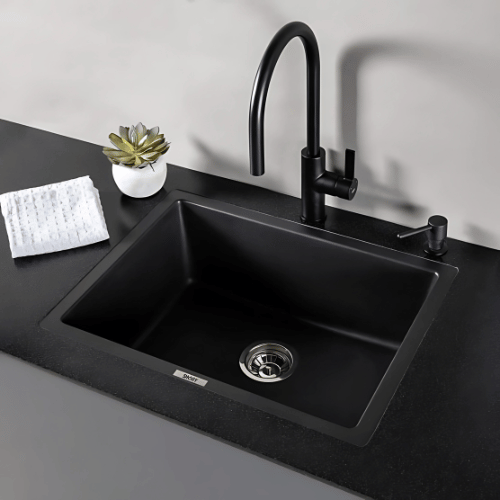 כיור גרניט למטבח התקנה שטוחה / תחתונה | לארון 60 ס"מ | דגם SH7115 | מגוון צבעים לבחירה