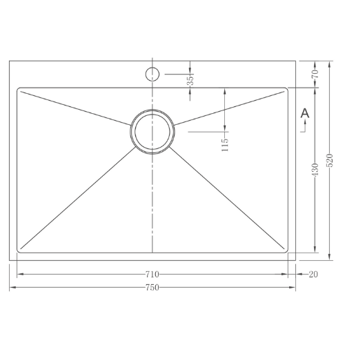 כיור מטבח נירוסטה התקנה שטוחה | מתאים לארון 80 ס"מ | עבודת יד דגם אירוס 755