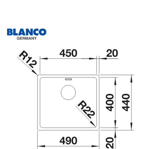 כיור נירוסטה למטבח | דגם אנדאנו 450 IF | מתאים לארון 50 ס"מ | מותג בלנקו Blanco תוצרת גרמניה