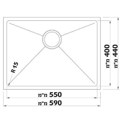 - זוויות פנים הכיור בעל רדיוסים מעודנים 15 מ״מ.