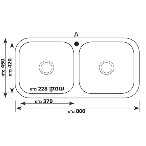 כיור נירוסטה כפול למטבח התקנה שטוחה / תחתונה | מתאים לארון 80 ס"מ | דגם SH7229