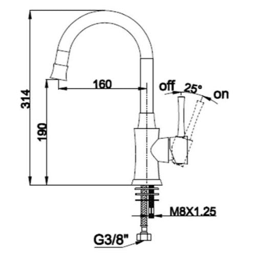 ברז קשת יוקרתי לכיור שקוע | גימור ניקל | V2000