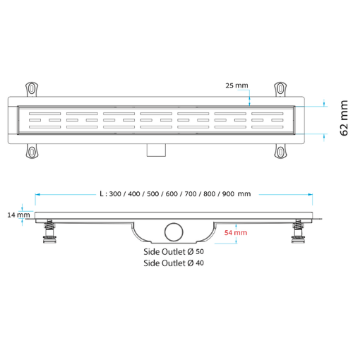 - תעלת הניקוז מגיע בשתי מידות לבחירה: 60 ס״מ ו70 ס״מ.