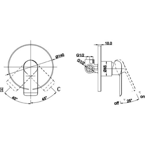 ברז אינטרפוץ 3 דרך מעוצב לאמבטיה | גוף וכיסוי קומפלט | שני צבעים לבחירה | מק״ט 8706