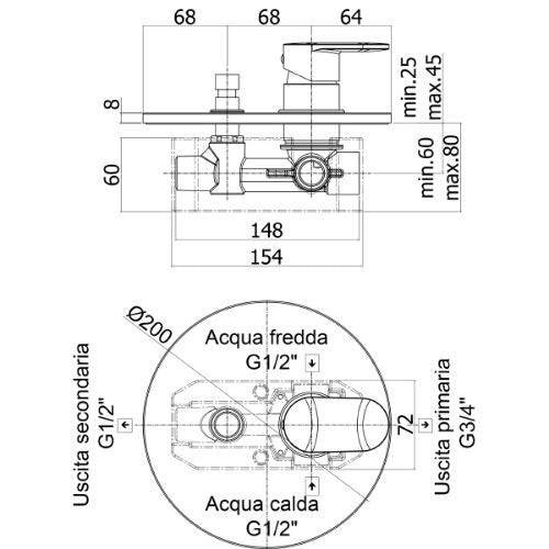 - ברז אינטרפוץ 4 דרך מעוצב לאמבטיה מבית פאפוני האיטלקית!