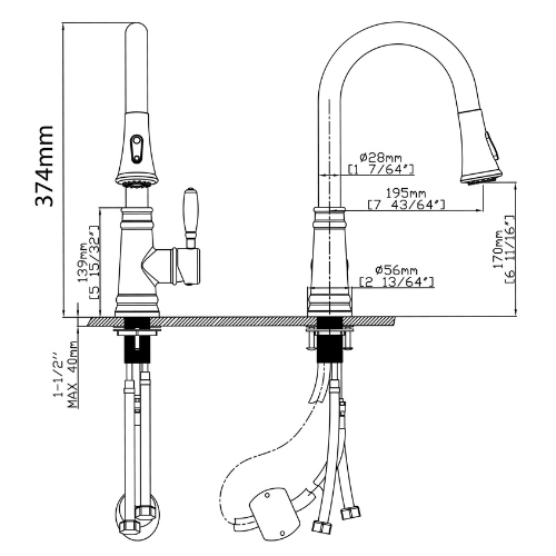 - מרחק הפיה ממרכז הברז: 19.5 ס"מ