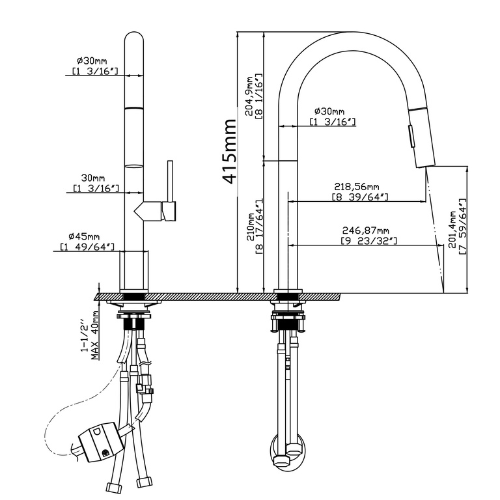 - מרחק הפיה ממרכז הברז: 21.8 ס"מ