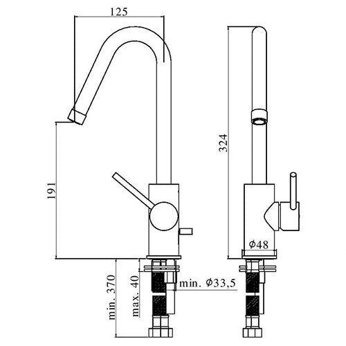 - מרחק הפיה ממרכז הברז: 12.5 ס"מ