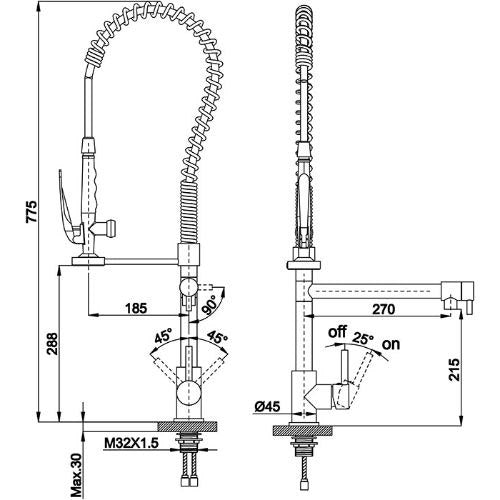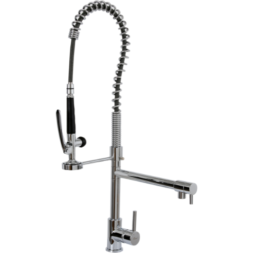 ברז תעשייתי | ברז נשלף לכיור מטבח | מזלף ופיה נפרדת | גימור ניקל | 8900