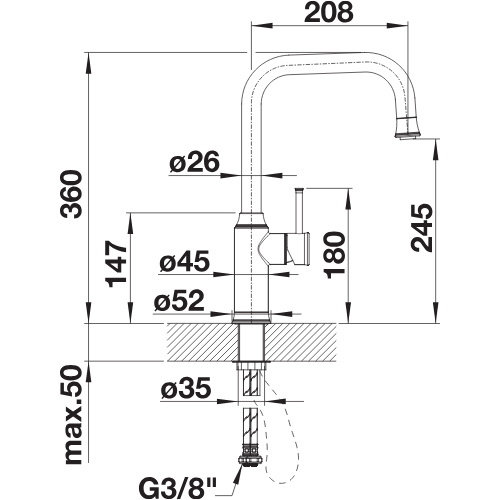 - מרחק הפיה ממרכז הברז: 20.8 ס"מ