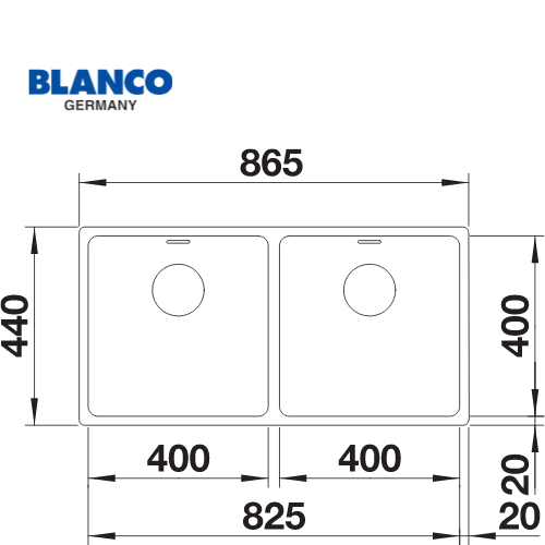 כיור נירוסטה כפול למטבח | דגם אנדאנו 400/400IF | מתאים לארון 90 ס"מ | מותג בלנקו Blanco תוצרת גרמניה