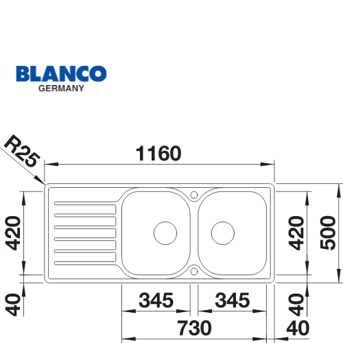 כיור נירוסטה כפול למטבח | דגם לאנטוס 8 S-IF | מתאים לארון 80 ס"מ | מותג בלנקו Blanco תוצרת גרמניה