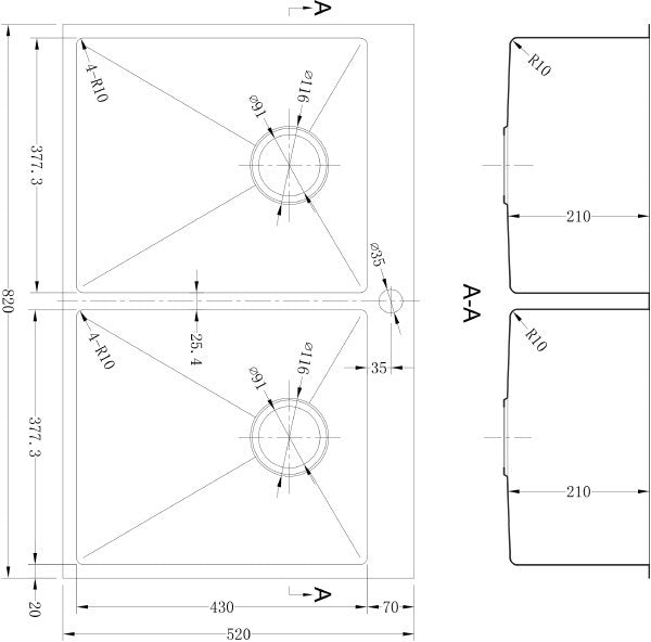 - כיור נירוסטה כפול בעבודת יד עם חור!