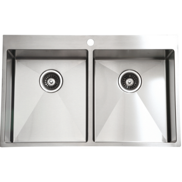 כיור נירוסטה כפול למטבח התקנה שטוחה | מתאים לארון 80 ס"מ | עבודת יד דגם הדס 825