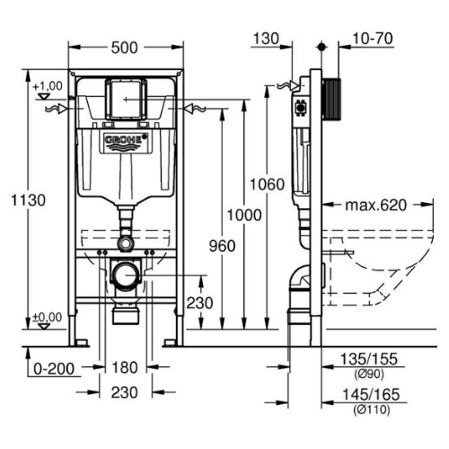 מיכל הדחה סמוי גרואה | מיכל דו כמותי | מבית GROHE | מק״ט 38528001