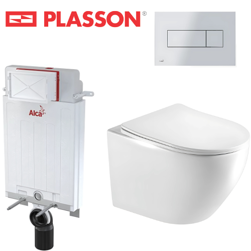 סט אסלה קומפלט | אסלה + מיכל הדחה + לחצן | מותג פלסאון | PLASSON