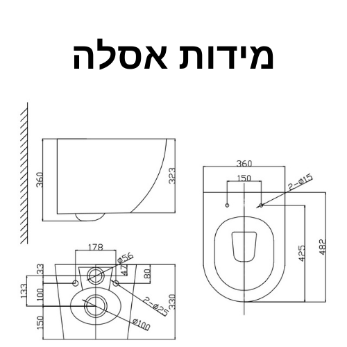 - סט הכולל אסלה תלויה + מיכל הדחה + לחצן הדחה.