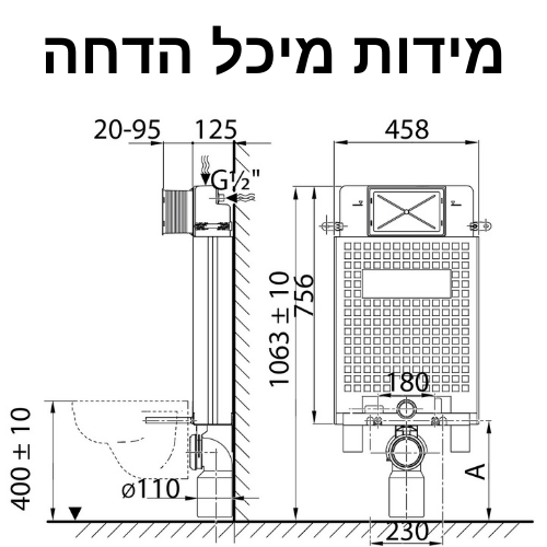 | גובה מיכל הדחה | |